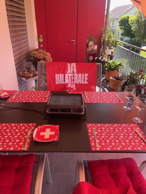 Ob im Wald, am See oder im Garten – zeig uns mit der Fahne deine bilaterale Schweiz!